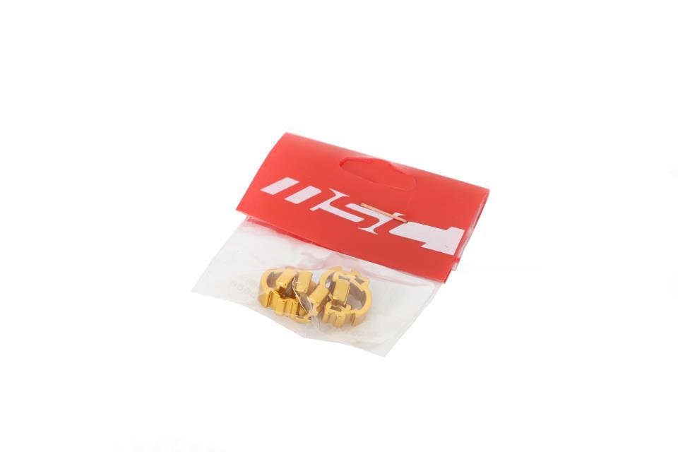 5 clips de aluminio 06061 para sujetar cables al cuadro. Color amarillo anodizado