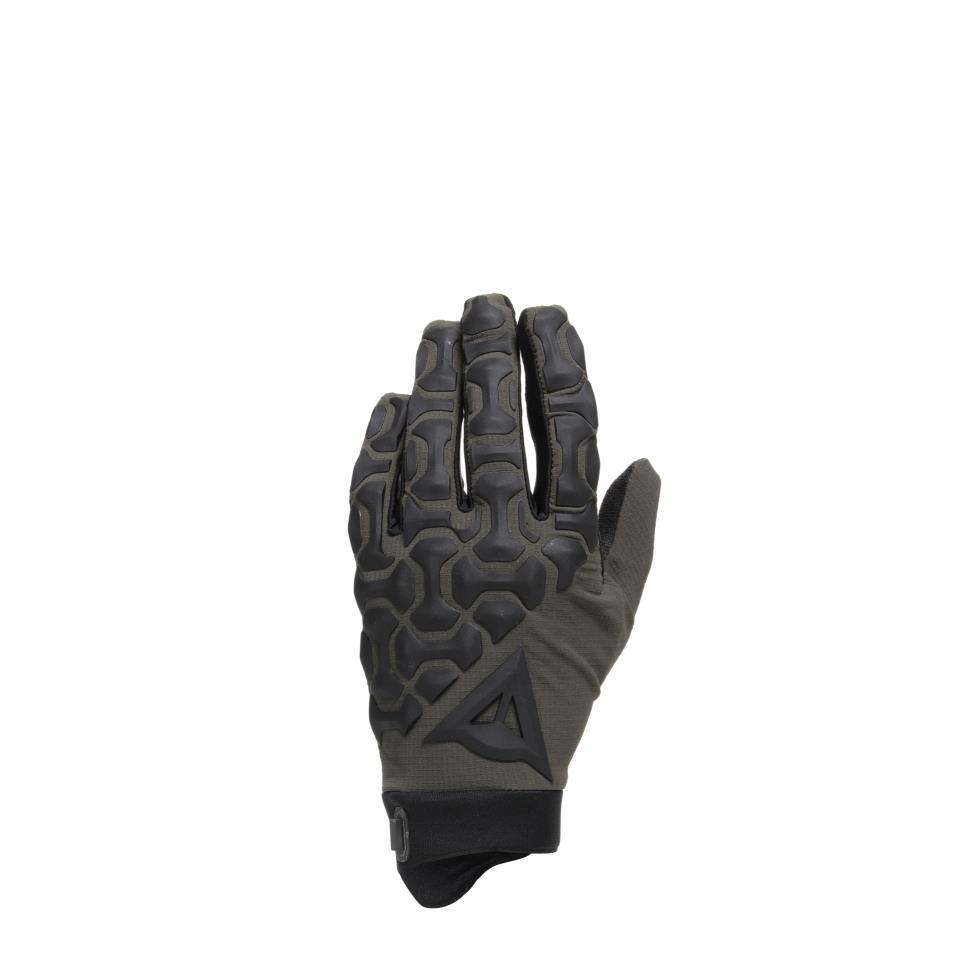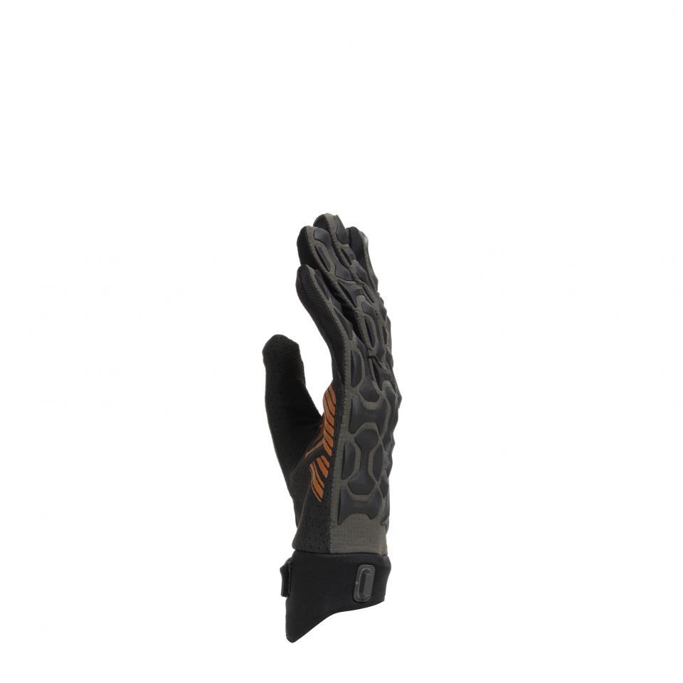 La línea Dainese HGR está diseñada para ofrecer a cada ciclista el más alto nivel de fuerza, resistencia y protección.Los guantes Dainese HGR Gloves EXT son los guantes más protectores de la categoría, y están diseñados para ofrecer protección contra los impactos y la máxima resistencia a los desgarros y a la abrasión en caso de caída o de contacto con objetos afilados como rocas, ramas y raíces. El dorso presenta un patrón especial antiabrasivo tridimensional extendido por todo el ancho de la mano.La facilidad de entrada y salida de la mano está garantizada por el práctico puño con correa de velcro, que posibilita una amplia gama de microajustes.El guante se puede fijar cómodamente a los pantalones de la línea Dainese HGR mediante el sistema Hook Button™, evitando la pérdida de tiempo en las fases rápidas de stop & go.La confianza y el control máximos en el manillar están garantizados por la fina palma de la mano, que cuenta con unos insertos especiales de silicona que no interfieren con las sensaciones en la bici y facilitan el uso de las pantallas táctiles con el guante puesto.