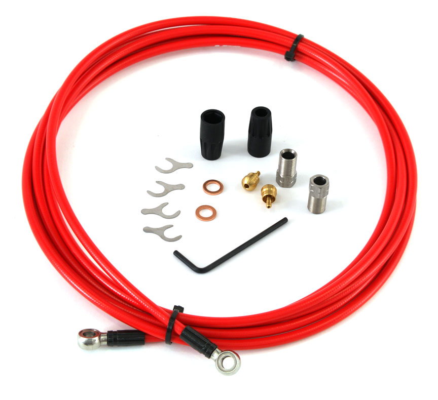 Kit de cable hidráulico con entrada banjo, color rojo. Vertical a rosca maneta/ banjo. Incluye: