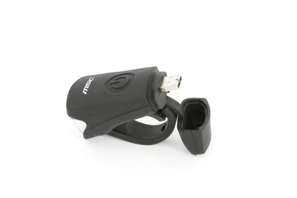 Luz blanca MSC. Diseñada para circular de forma segura en bicicleta. Facilita la visibilidad del ciclista hacia peatones y otros vehículos.