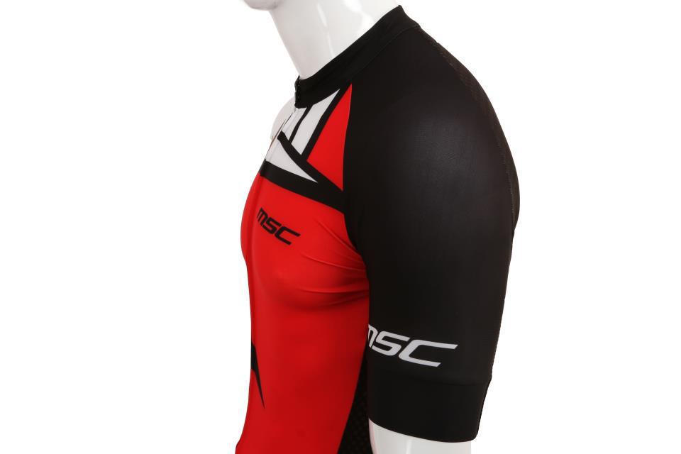 Maillot alta gama de manga corta MSC. Patrón ceñido y tejido elástico para una adaptación anatómica perfecta al cuerpo y postura del ciclista. Máxima garantía de ligereza, ergonomía y transpirabilidad.