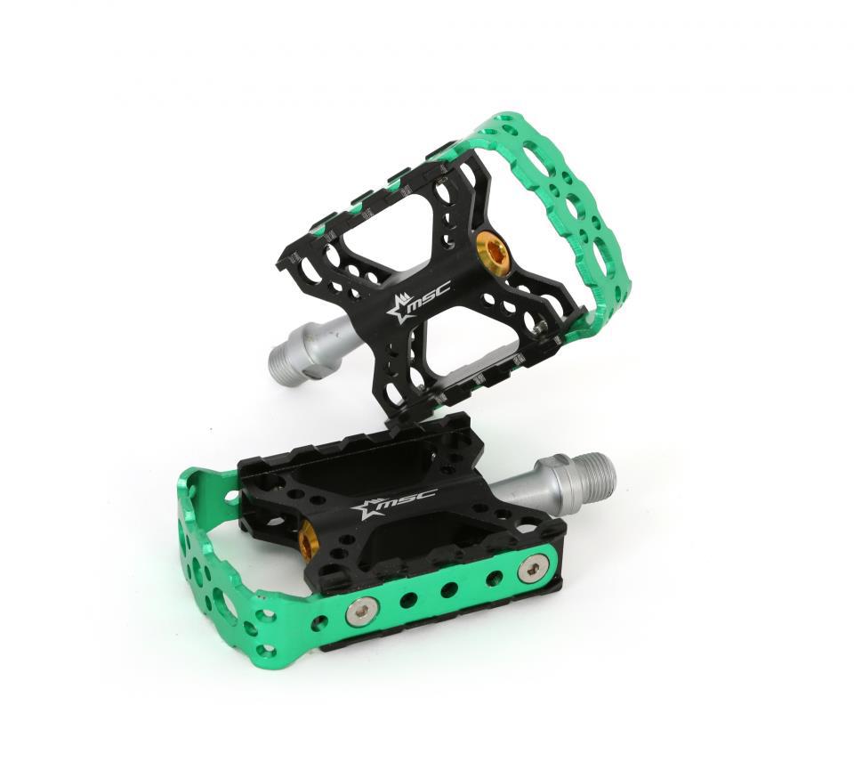 PEDALES PLATAFORMA MSC ALU 6063T5 EJE CRMO GREEN