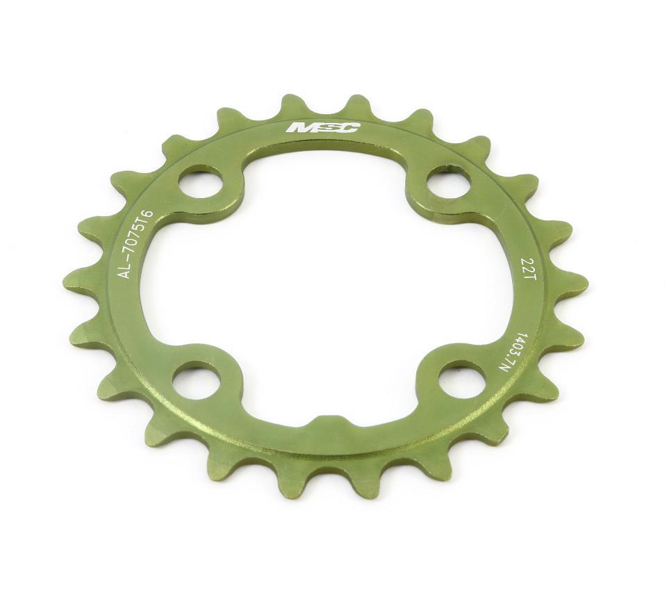 Plato MSC de 4 brazos fabricado en aluminio CNC 7075, color verde. 22T y 64 mm BCD. Recomendado para XC, compatible con FSA,Truvativ, MSC, etc.