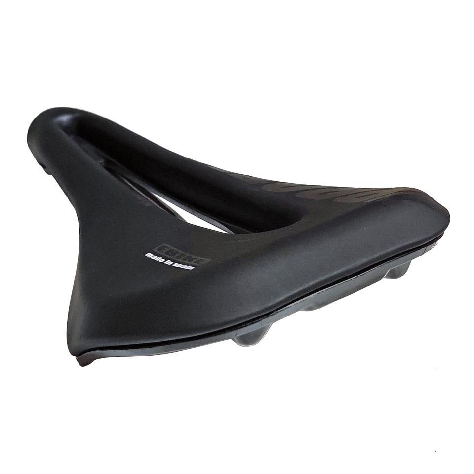 Detrás de nuestros sillines hay cientos de estudios biomecánicos, huellas de presión, tests de calidad y pruebas en competición realizados en distintas ubicaciones de España. Sus diseños y ergonomía han sido estudiados concienzudamente durante dos años para adaptarse a cualquier tipo de fisionomía. El gran reto en su desarrollo ha sido conseguir que durante el pedaleo, se asegurara una correcta circulación de la sangre en la zona perineal. Ello se ha conseguido combinando una mayor anchura (145 mm) para redistribuir mejor el peso, una longitud del sillín más corta, el hueco central, y todo el canal longitudinal.