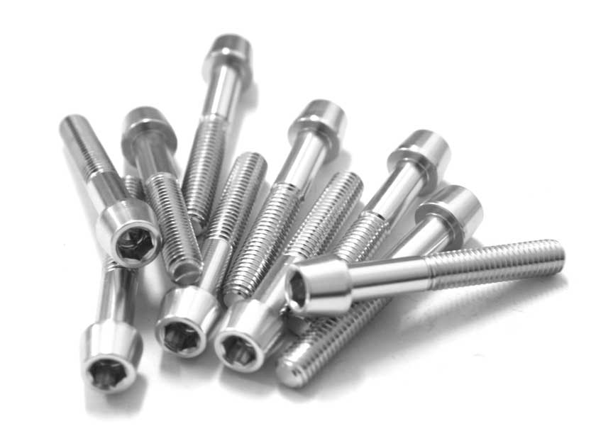Juego de 10 tornillos fabricados en aluminio 7075T6, M6x40 mm. En color plata anodizado, tienen un peso de 3,7 gr/unidad