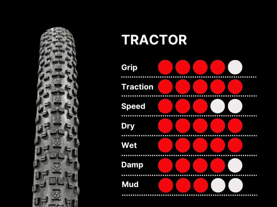 Un nervio vertical une el taqueado semi lateral y lo provee de mayor consistencia y estabilidad. La zona lateral cuenta con tacos rectangulares situados en dos posiciones distintas para dotar al neumático de un agarre más efectivo. Las entalladuras de los tacos han sido aplicadas en posición vertical y horizontal. Éstas proporcionan un punto extra de flexibilidad a cada taco, lo que aseguran una mejor adaptación al terreno y mayor resistencia al degradado del compuesto.