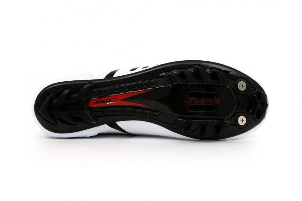 – Suela taqueada de carbono, rígida y robusta. Opción de tacos de aluminio en la parte delantera