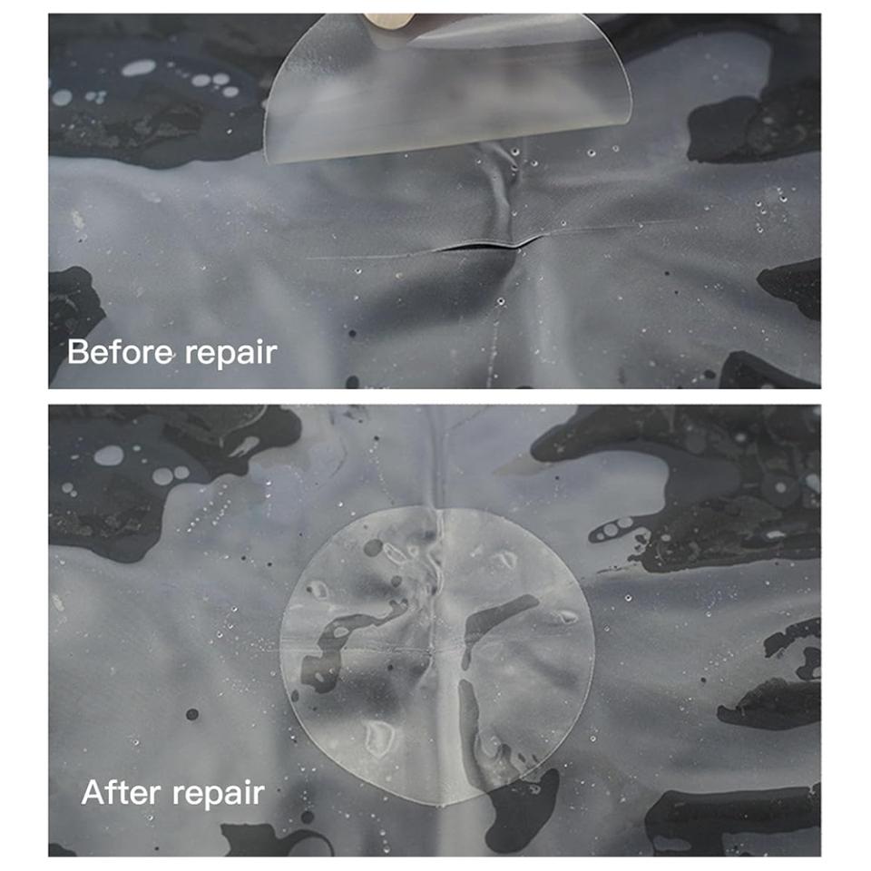 Material de TPU de alta resistencia: el parche de reparación está hecho de material de TPU de alta resistencia, impermeable, resistente a altas temperaturas, fuerte fuerza adhesiva, transparente y duradero. Previene mayores daños y prolonga la vida útil del equipo. Recuperarse de actividades al aire libre rápida y fácilmente.
